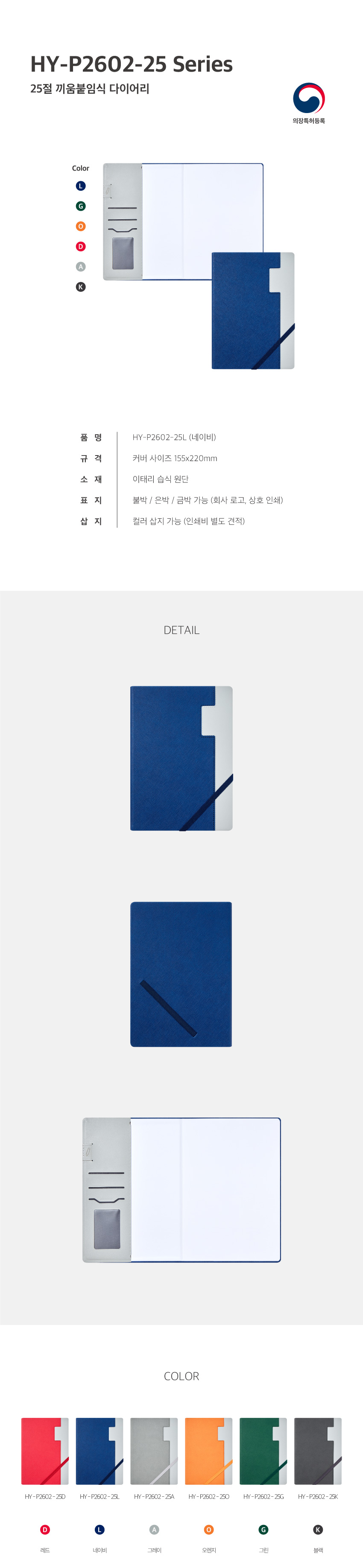25절 붙임식 HY-P2602-25L (네이비)